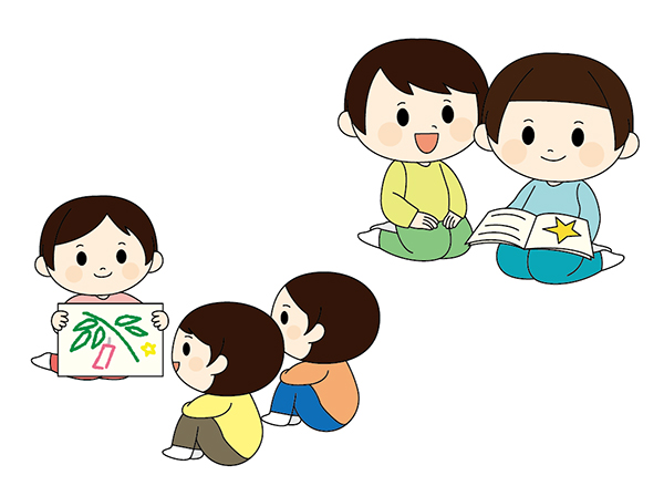 七夕の絵本や紙芝居、お話を見たり聞いたりするコーナーを設ける。