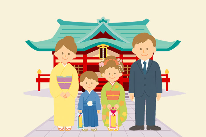「七五三」は、子どもの健やかな成長をお祝いする日本の伝統行事です。古くからの、3歳の男女が髪を伸ばし始める「髪置き」、5歳の男の子が袴を着る「袴着」、7歳の女の子が帯を結ぶ「帯解き」といった儀式に由来していると言われています。現在では11月15日前後に神社へお参りし、無事に成長できたことへの感謝と、これからの健康を祈ります。(対象となる年齢やお参りの時期は、地域や家庭によって異なる場合もあります)