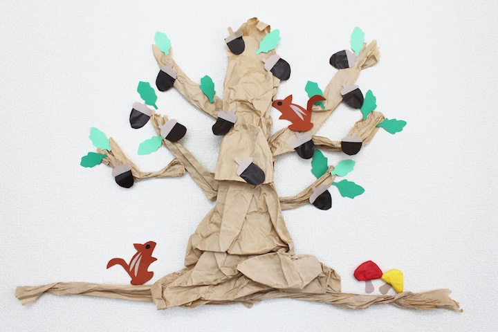 - ②の幹に①を飾り付けて、どんぐりの木のできあがり!