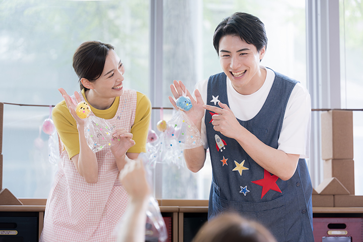 A. 園によって雰囲気が違うため、まずは周囲の先生の声のトーンや話す速さを観察しましょう。静かな園では柔らかく、にぎやかなクラスでは明るくはっきりと。相手に届く声量を意識することが大切です。
