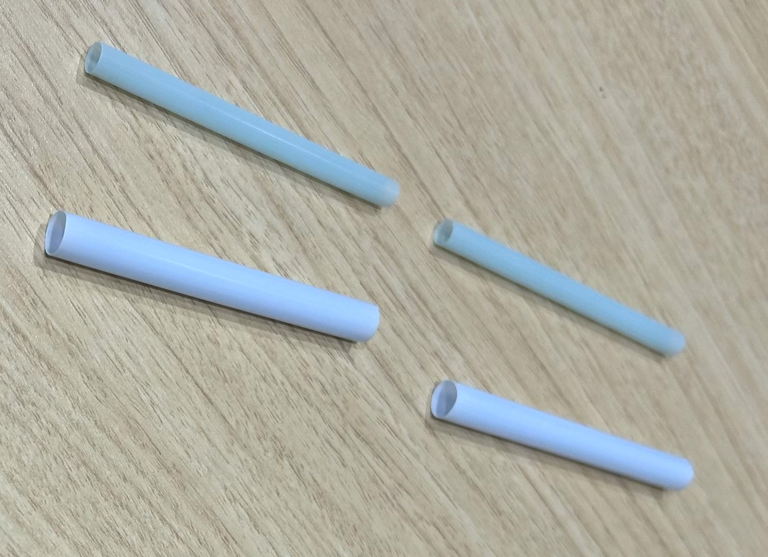 - [ストロー鉄砲を作る]太いストローと細いストローを、それぞれ半分の長さにはさみで切る。