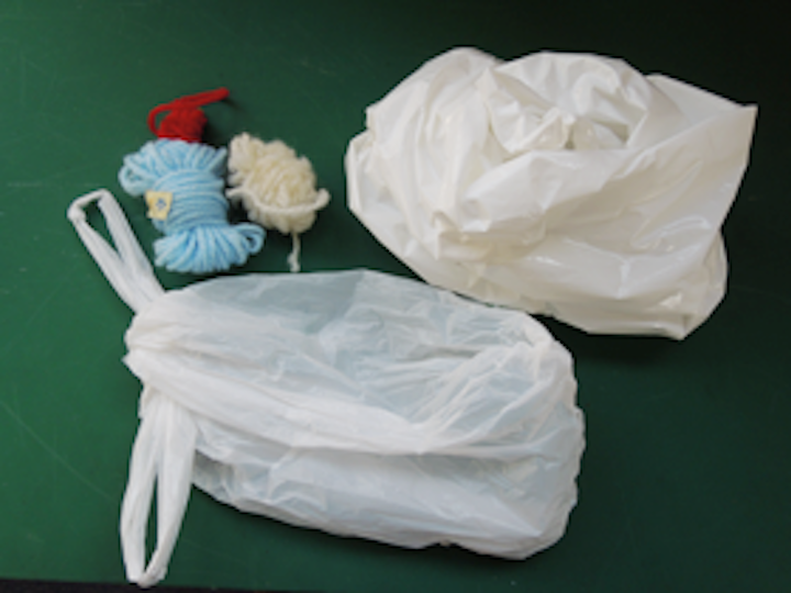 1:身近ないろいろ素材を活用して、表現する。ビニール袋も工夫次第でいろいろと変化する。