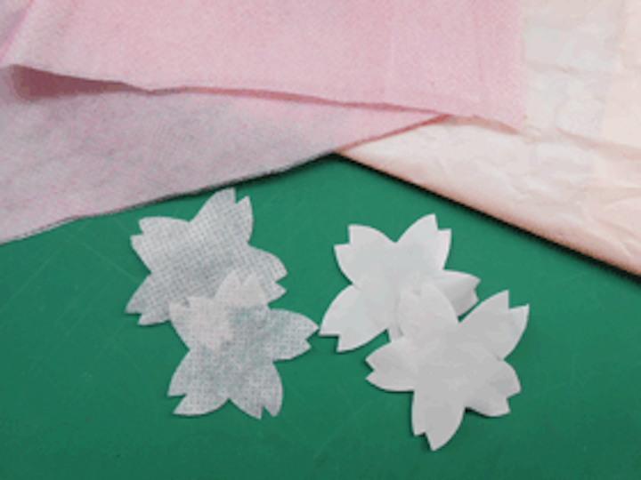 - 【桜のモチーフの作り方】ピンク色の紙で、さくらの花を切る。