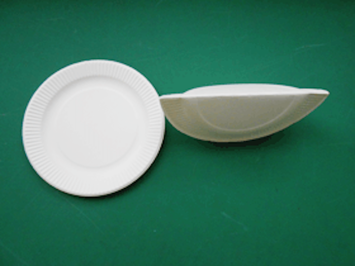 - 【ゆらゆら小鳥の作り方】紙皿を半分に折る。