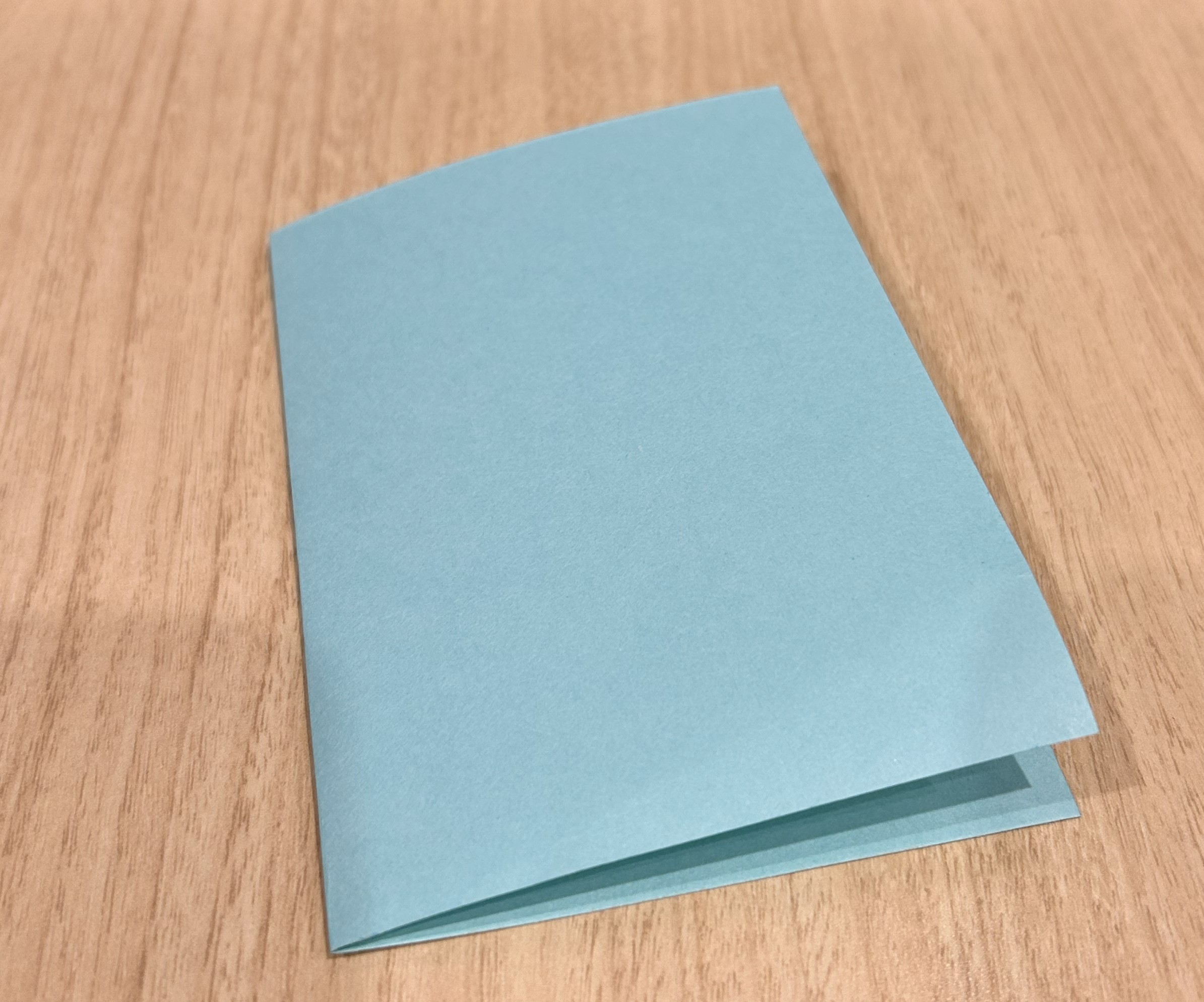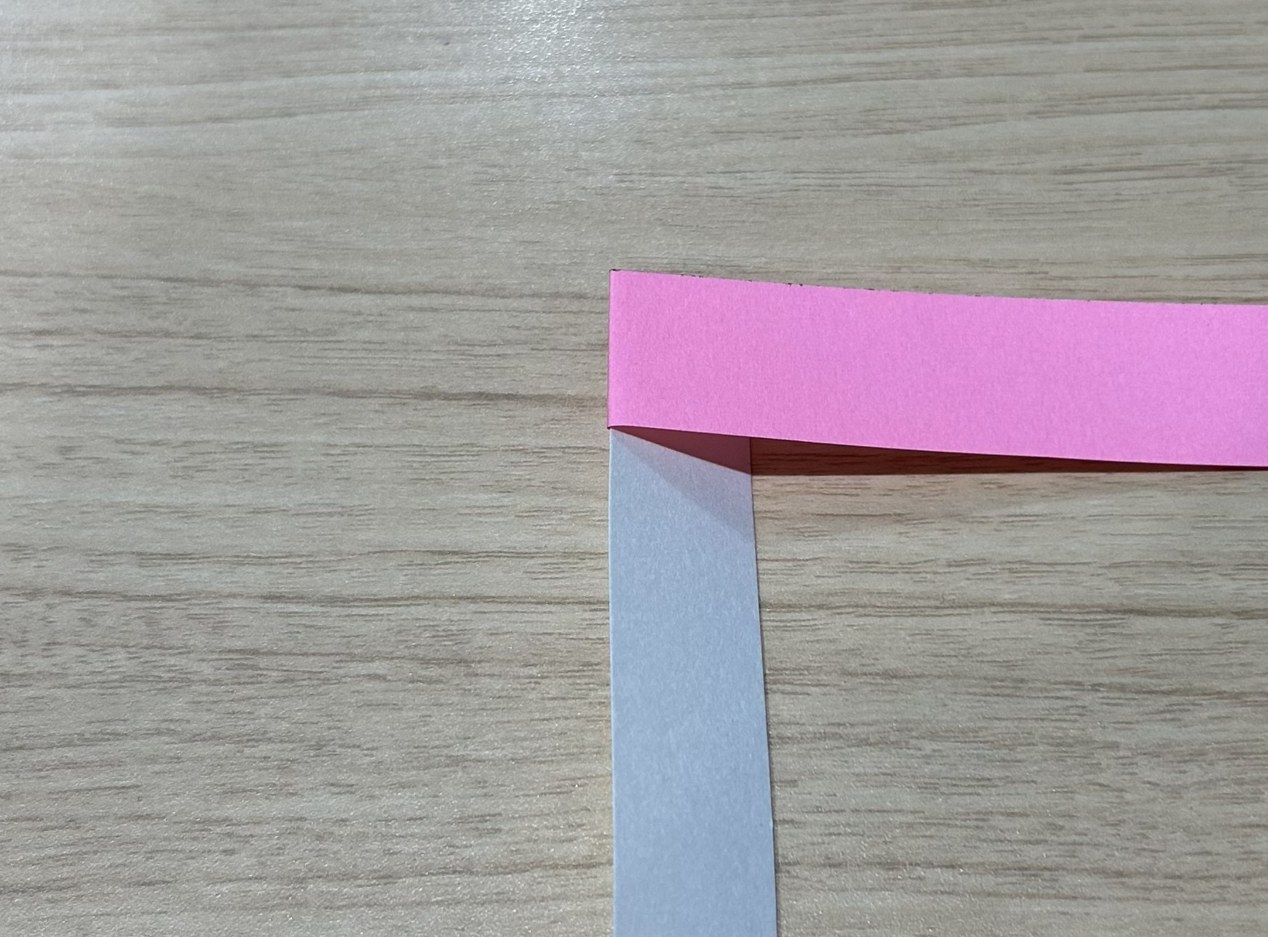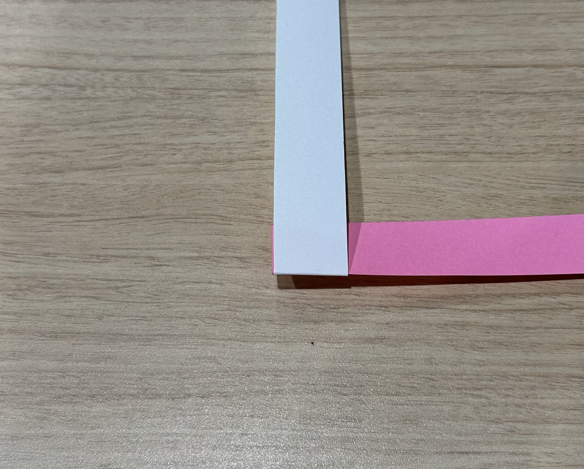 - 重ねた部分から左にある画用紙は右に、下にある画用紙は上に…と、交互に重ねるようにして折っていく。