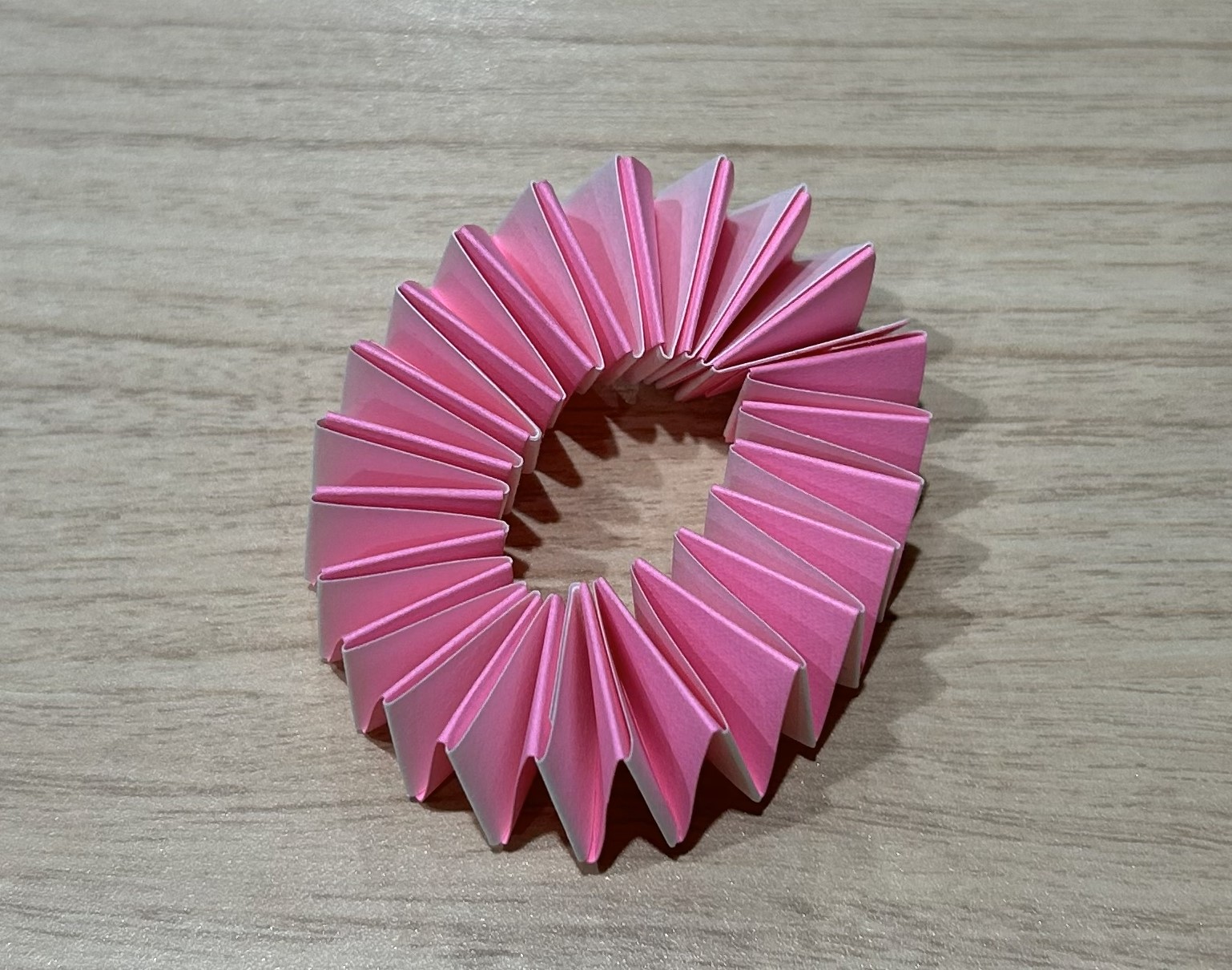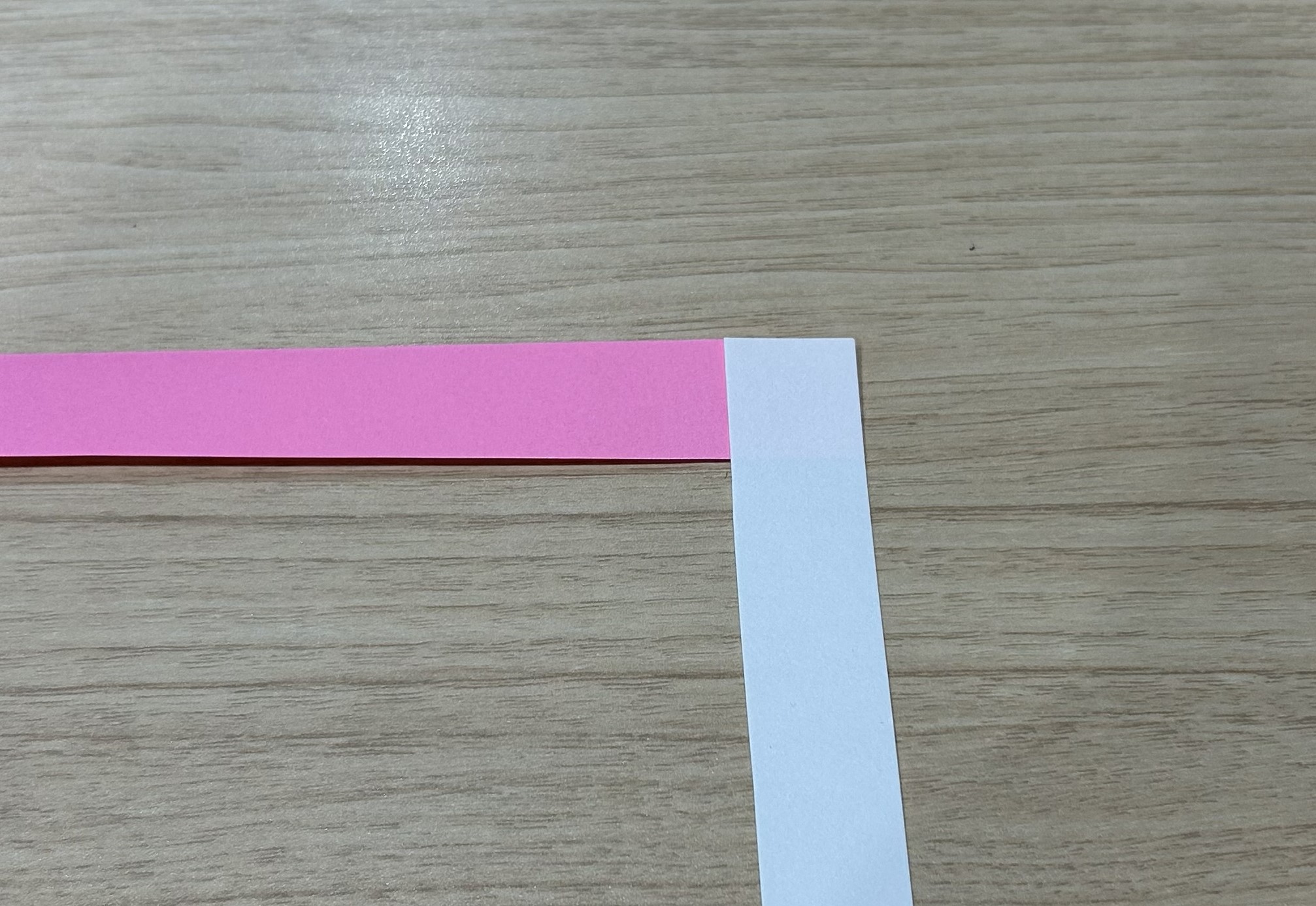 - 折り重ねたら、端同士をのりで貼り付け、輪っかにする