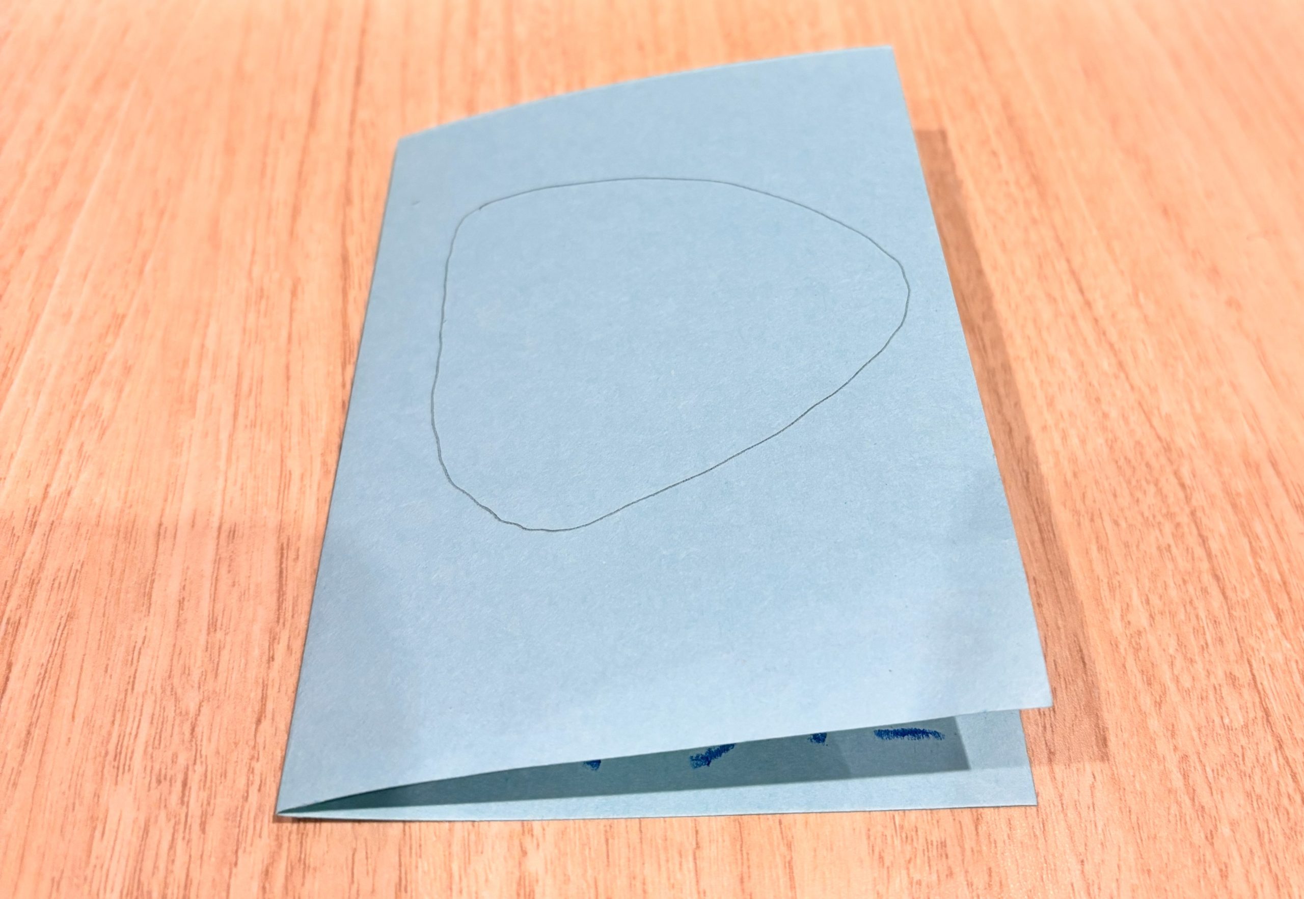 - カードの表紙に鉛筆で薄く花束の形を描き、中にのりを塗る。