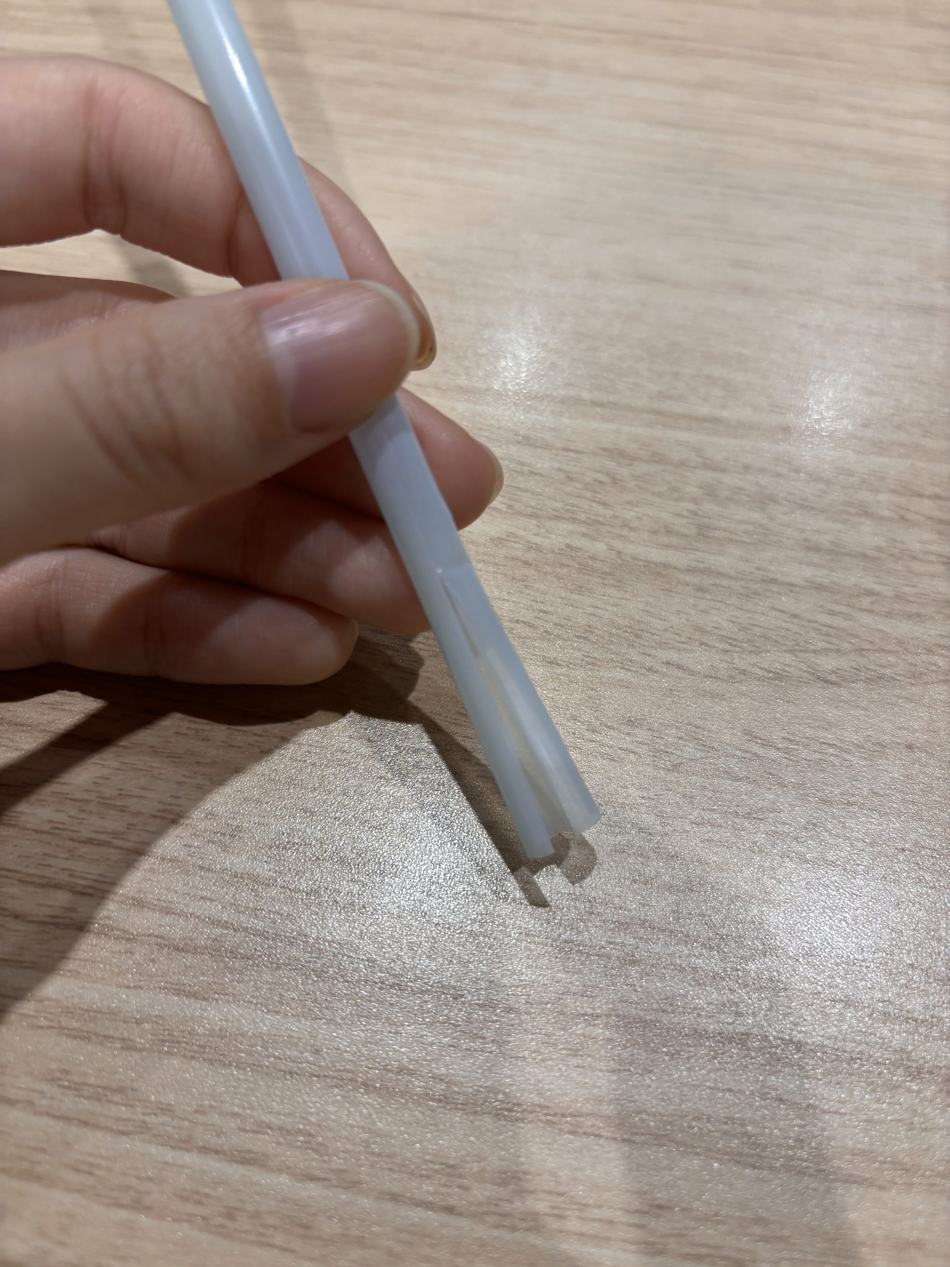 - 4で余ったストローを紙コップの口の幅より長めに切る。