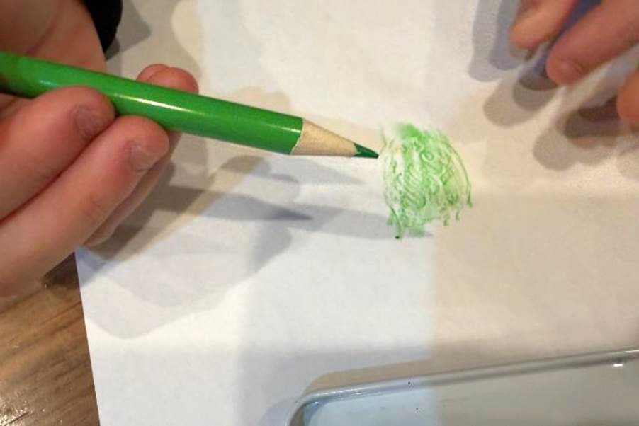 紙の上から色鉛筆でこする。