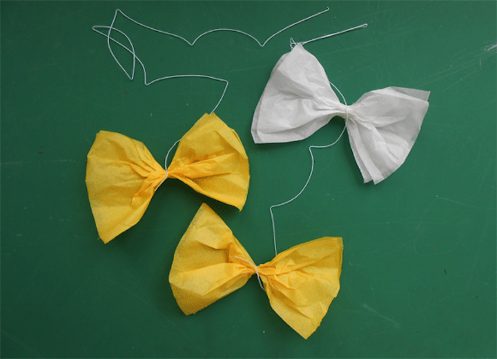 - お花紙でちょうちょを作り、糸を付ける。