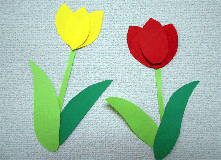 - 色画用紙でチューリップを作る。