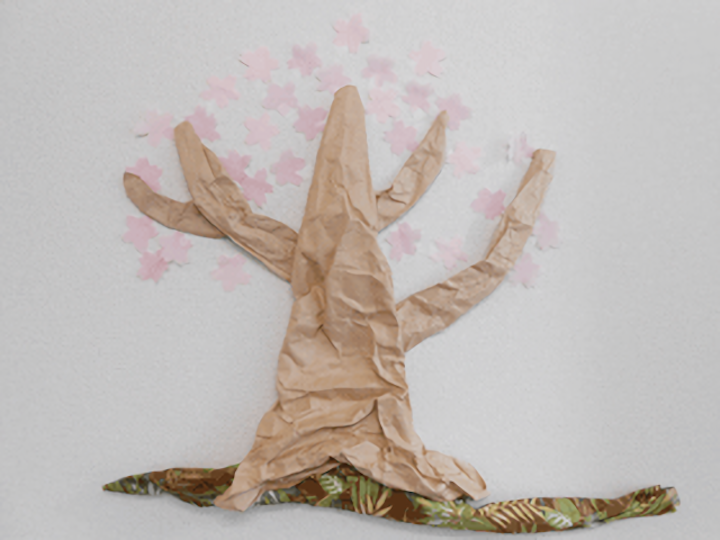 子どもたちの成長を見守ってくれるような、太くて大きな幹の「四季の木」。入園を歓迎する気持ちをこめて桜の花をたくさん咲かせましょう。