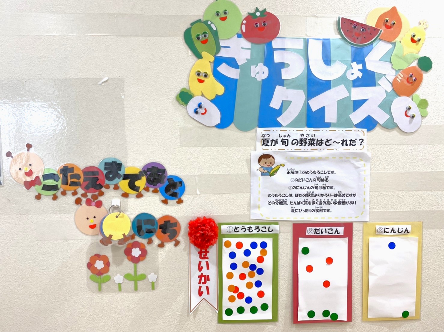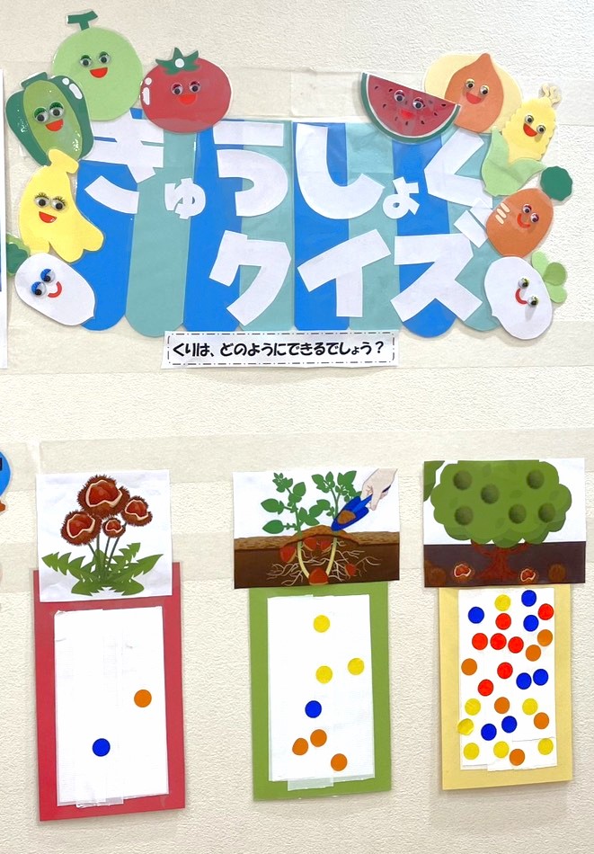 答えを掲示する際には、正解だけでなく野菜や食材についての豆知識も一緒に紹介しました。