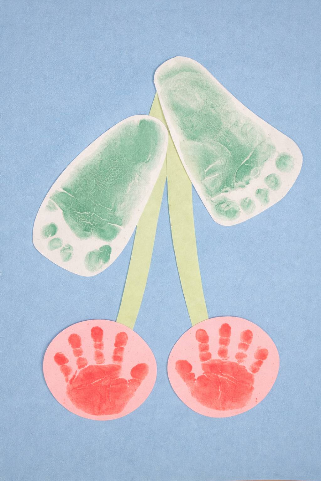 絵の具の色を変えて逆さまにすると、さくらんぼの製作にもなります。