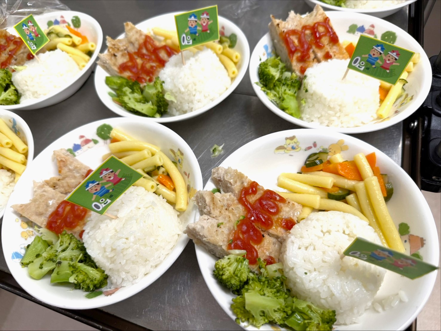 こどもの日の行事に合わせて、子どもたちが楽しみながら食べられる特別な給食を提供しました。今回の献立は、見た目からも行事の雰囲気を感じられるよう工夫した「こどもの日ワンプレート」です。