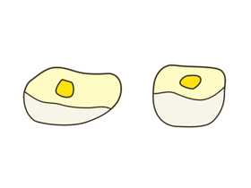 ②が耳たぶ位のかたさになったら6等分にして、さつま芋を中にうめこむ